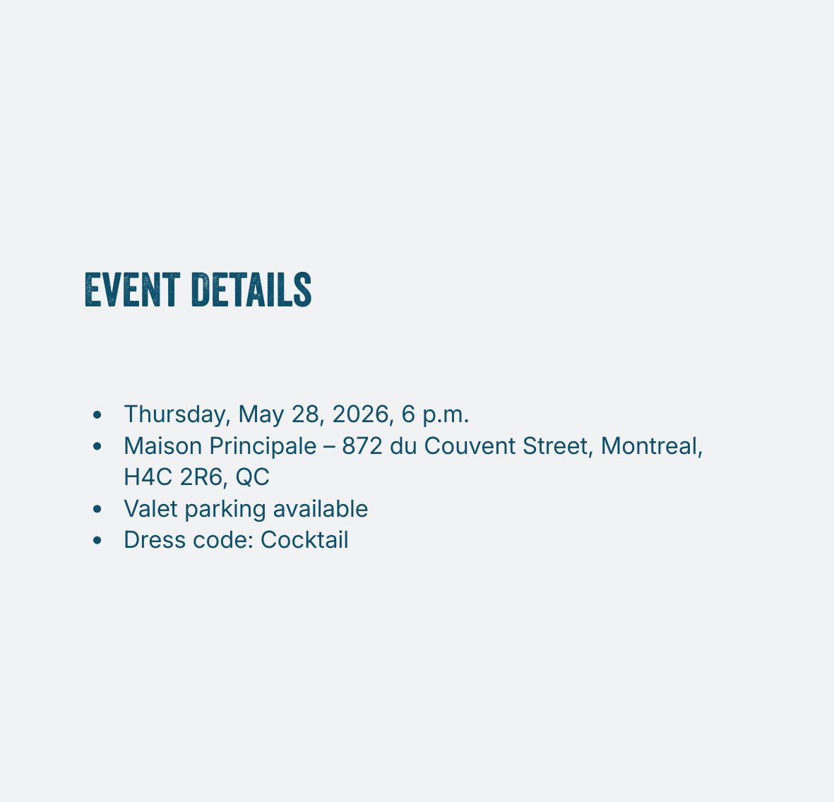 For the second consecutive year, we welcome you to our benefit event on Thursday, May 28, 2026, at 6 p.m.